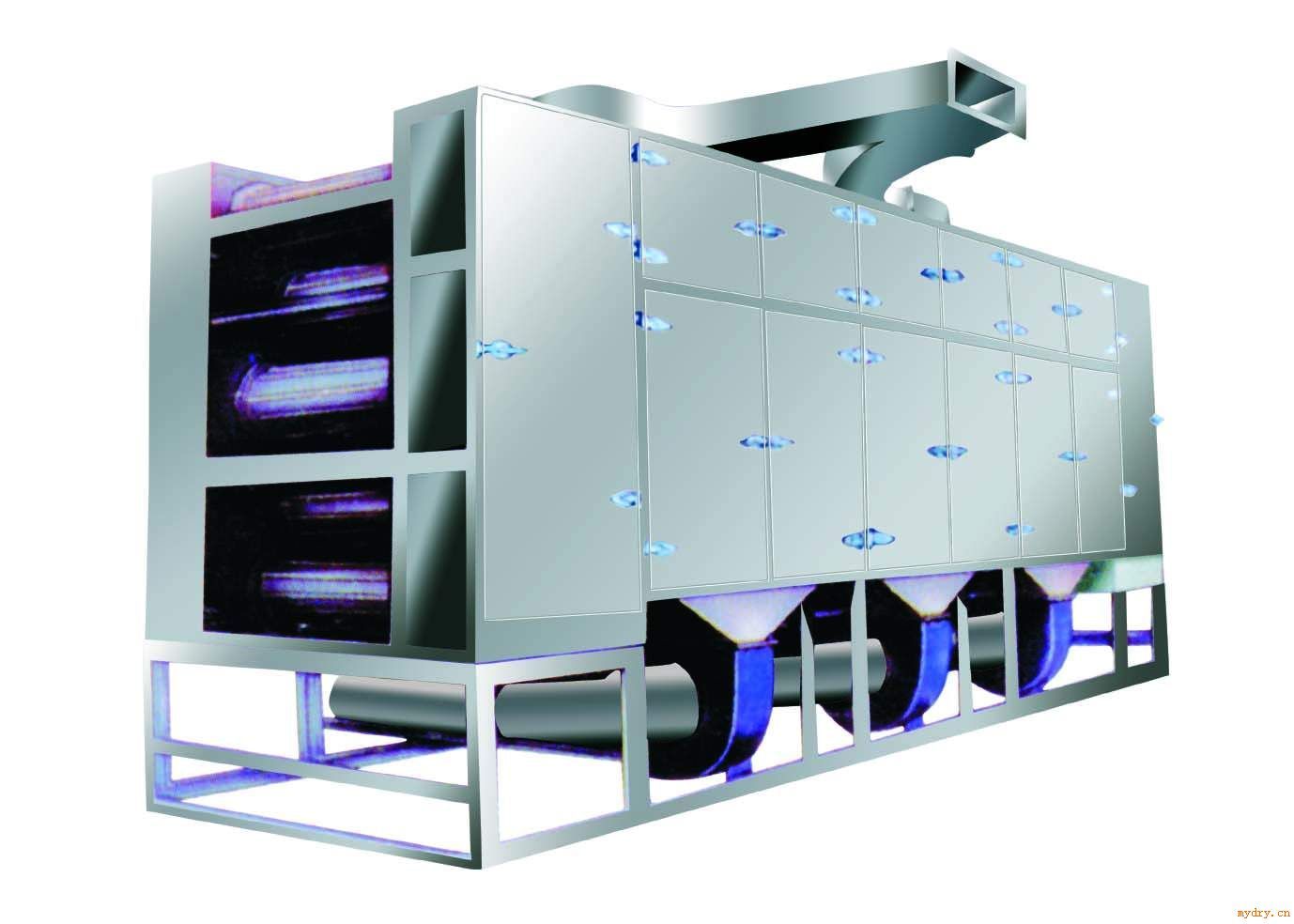 (2)多級帶式干燥機:多級帶干燥實質上是由數臺單級帶干機串聯組成,其操作原理與單級帶干機相同。