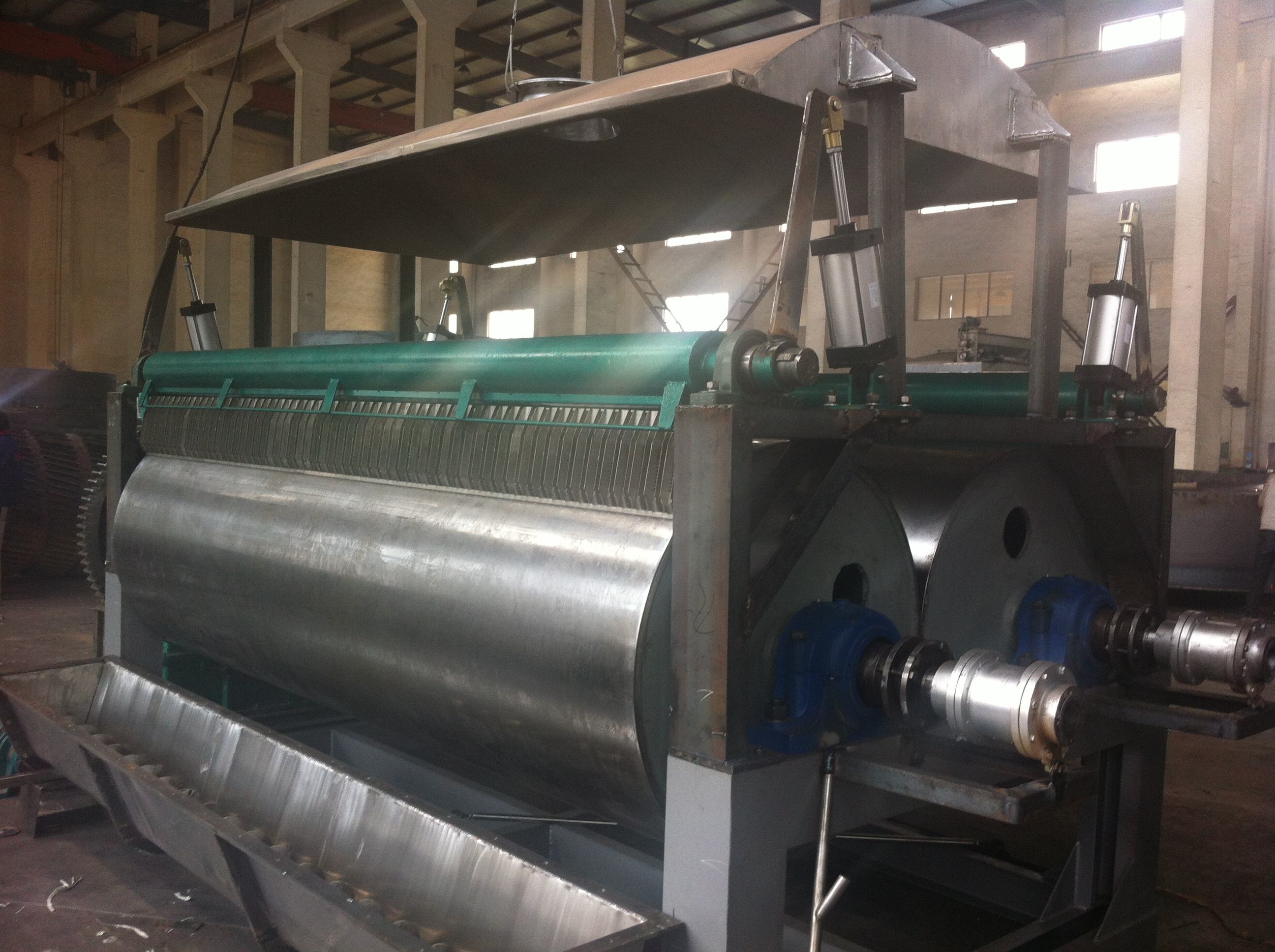 為了避免這些干燥設(shè)備缺陷的影響,可以通過加翅片換熱器、溶劑回收冷凝器、袋式過濾器、干料返混機(jī)構(gòu)、引風(fēng)機(jī)等輔機(jī),可提高干燥機(jī)的生產(chǎn)能力。干燥膏糊狀和熱敏性物料,每塊盤或每組盤能各自加熱或冷卻。