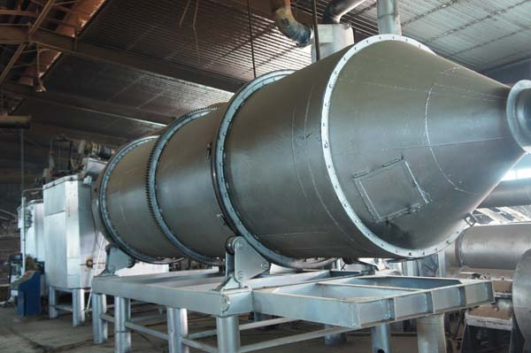 工業(yè)烘干設備屬于礦山機械,一般多為大、中型機械,其熱源來自燃燒裝置,采用順流式加熱方式。因此需要烘干的物料,從進料箱、進料溜進入筒體,即被螺旋抄板推向后。由于烘干機傾斜放置,物料一方面在重力和回轉作用下流向后端,另一方面物料被抄板反復抄起,帶至上端再不斷地揚撒下來,使物料在筒內形成均勻的幕簾,充分與筒內的熱氣流進行熱交換,由于物料反復揚撒,所含的水分逐漸被烘干,從而達到烘干的目的。